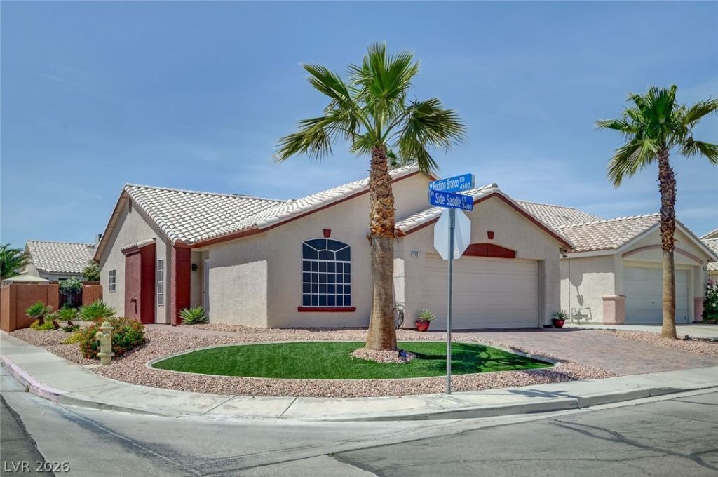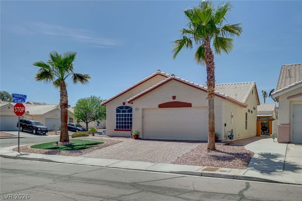 BEAUTIFUL SINGLE-STORY HOME WITH TONS OF UPGRADES INCLUDING A FRESHLY PAINTED EXTERIOR AND WINDOW SHADES FOR KEEPING IT COOL DURING VEGAS SUMMER HEAT! THIS 3-BEDROOM FEATURES A SPACIOUS, FUNCTIONAL LAYOUT. KITCHEN EQUIPPED WITH GRANITE COUNTERTOPS, TILE FLOORING, AND STAINLESS STEEL APPLIANCES. AS WELL AS A COZY FIREPLACE IN THE LIVING ROOM, AND PLUSH CARPET IN THE BEDROOMS FOR ADDED COMFORT. BATHROOMS UPGRADED AS WELL WITH LOVELY BACKSPLASH, VANITIES, AND NEW FIXTURES. ENJOY A GENEROUSLY SIZED BACKYARD WITH LOW-MAINTENANCE LANDSCAPING, PAVERS, AND GRILL + A CHARMING COBBLESTONE DRIVEWAY. THIS HOME IS MOVE-IN READY AND A MUST-SEE.